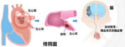 劉醫生:由於心房收縮不規則,血液較易滯留在心房內,尤其在左心耳位置,從而形成血塊。若血塊脫落,隨血流進入腦部,會造成血管堵塞,引致缺血性中風。
